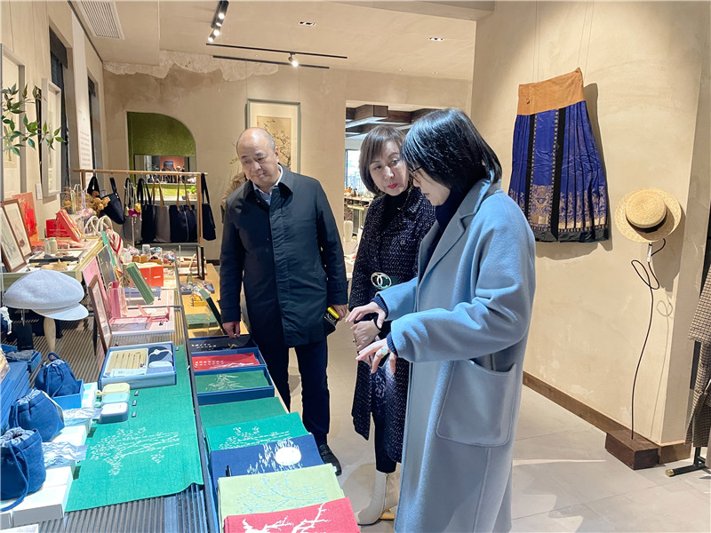 在南通市非物质文化遗产仿真绣传承基地——沈绣博物馆,国家级非遗传承人张蕾详细讲解了沈绣博物馆的厚重文化历史和璀璨的今生,望着一件件精美绝伦、巧夺天工的绣品,袁亚康会长连连赞叹,并对一百多年前张謇先生创办女红传习所,培养了一批批沈绣传人以及近年来南通非遗保护传承获得的成绩大加称赞,并殷切希望沈绣艺术继续弘扬、升华!
